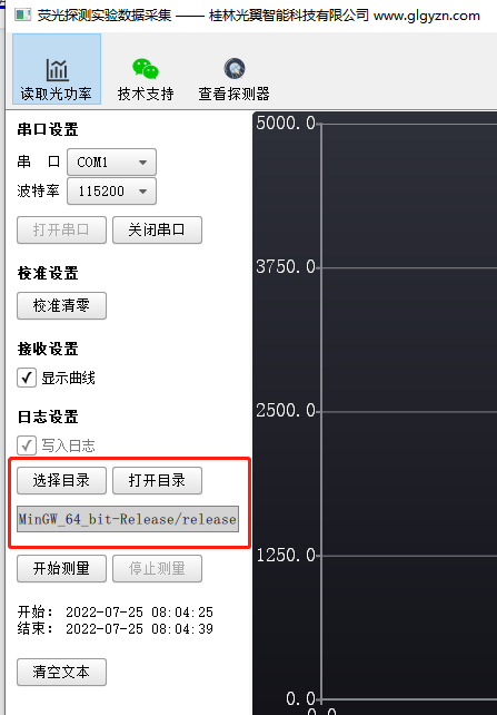 “選擇目錄”按鈕我們可以配置熒光實驗的數(shù)據(jù)保存目錄,“打開目錄”我們可以打開對應(yīng)的目錄,找到熒光實驗的數(shù)據(jù)集。